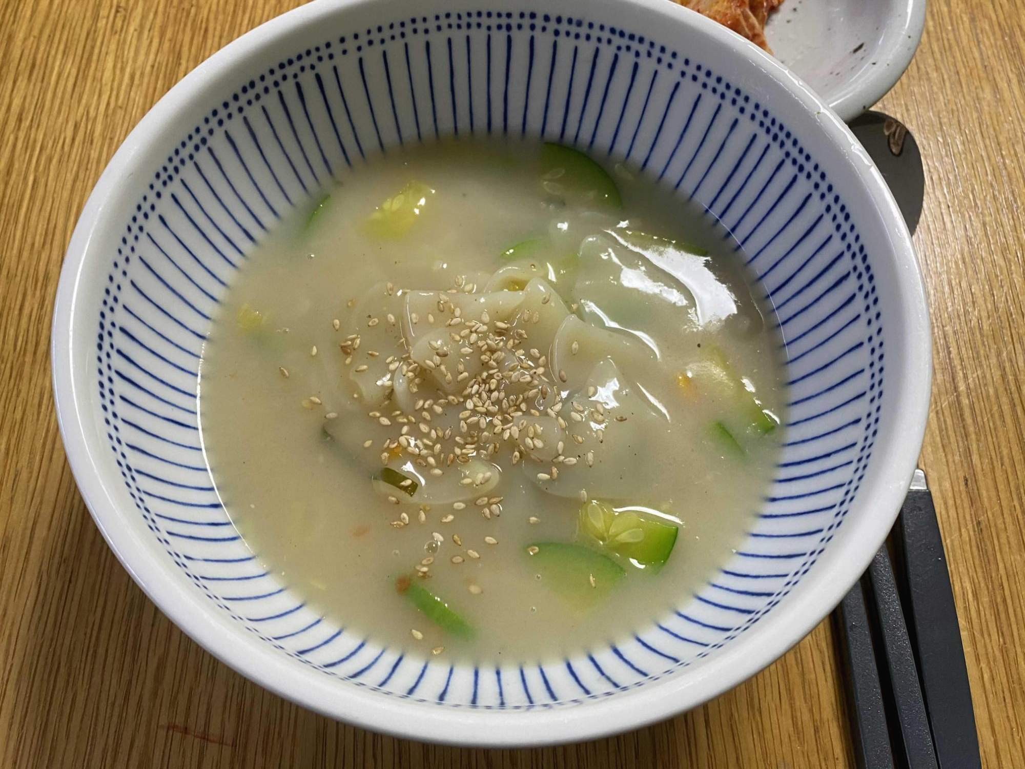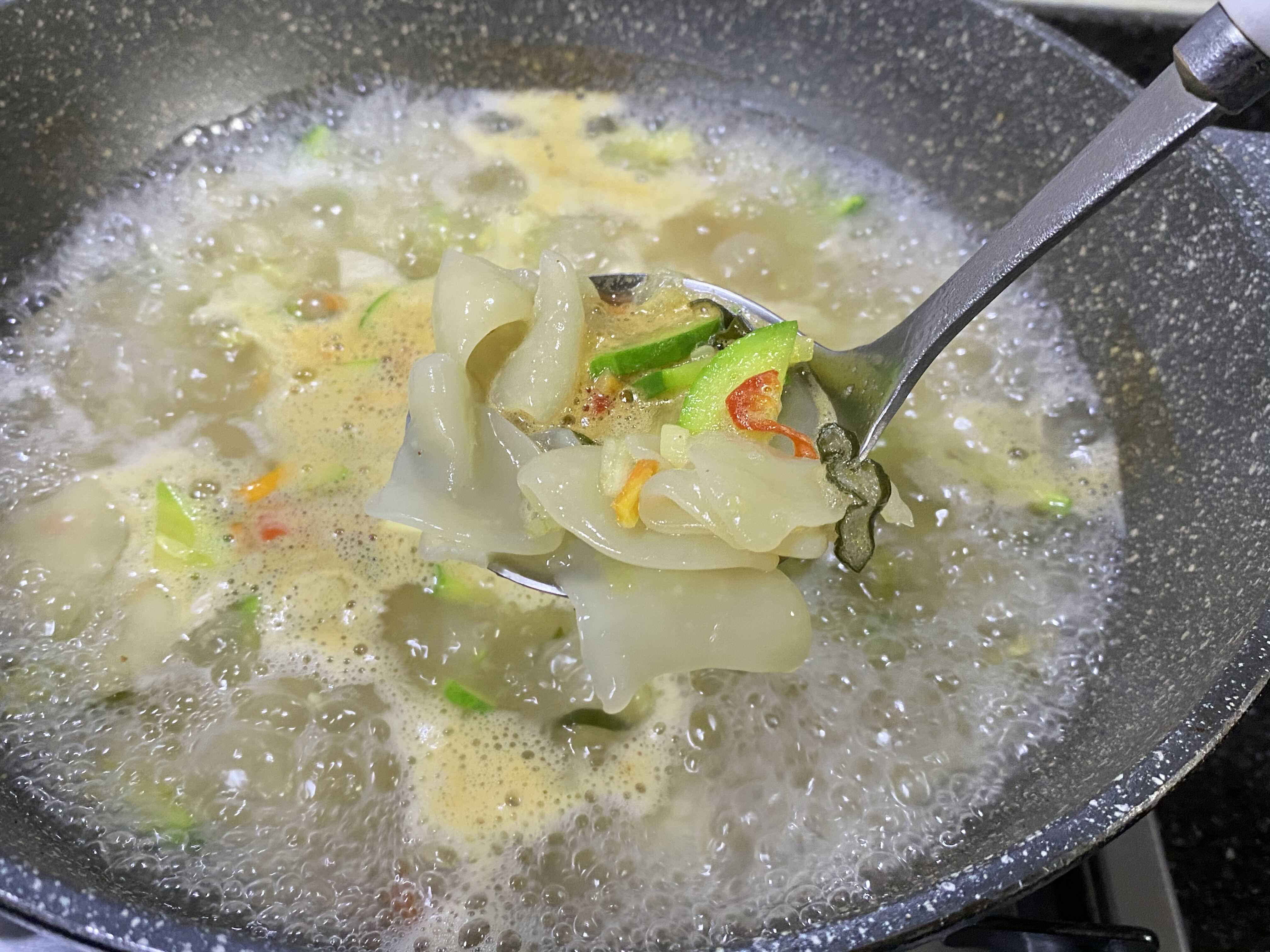건더기블럭도 넣어서 저으면서 풀었어요.그리고 나서 수제비를 넣었답니다.