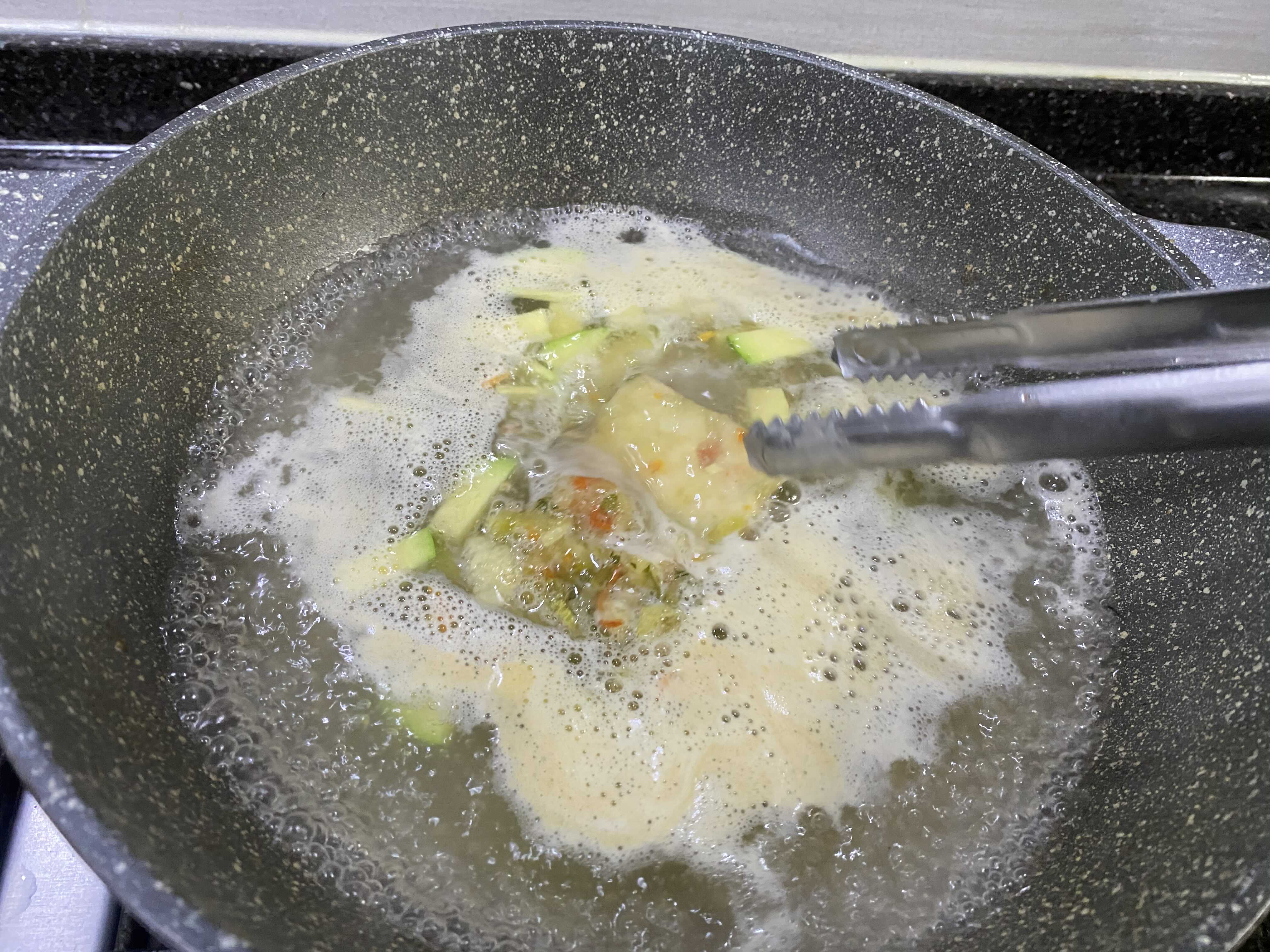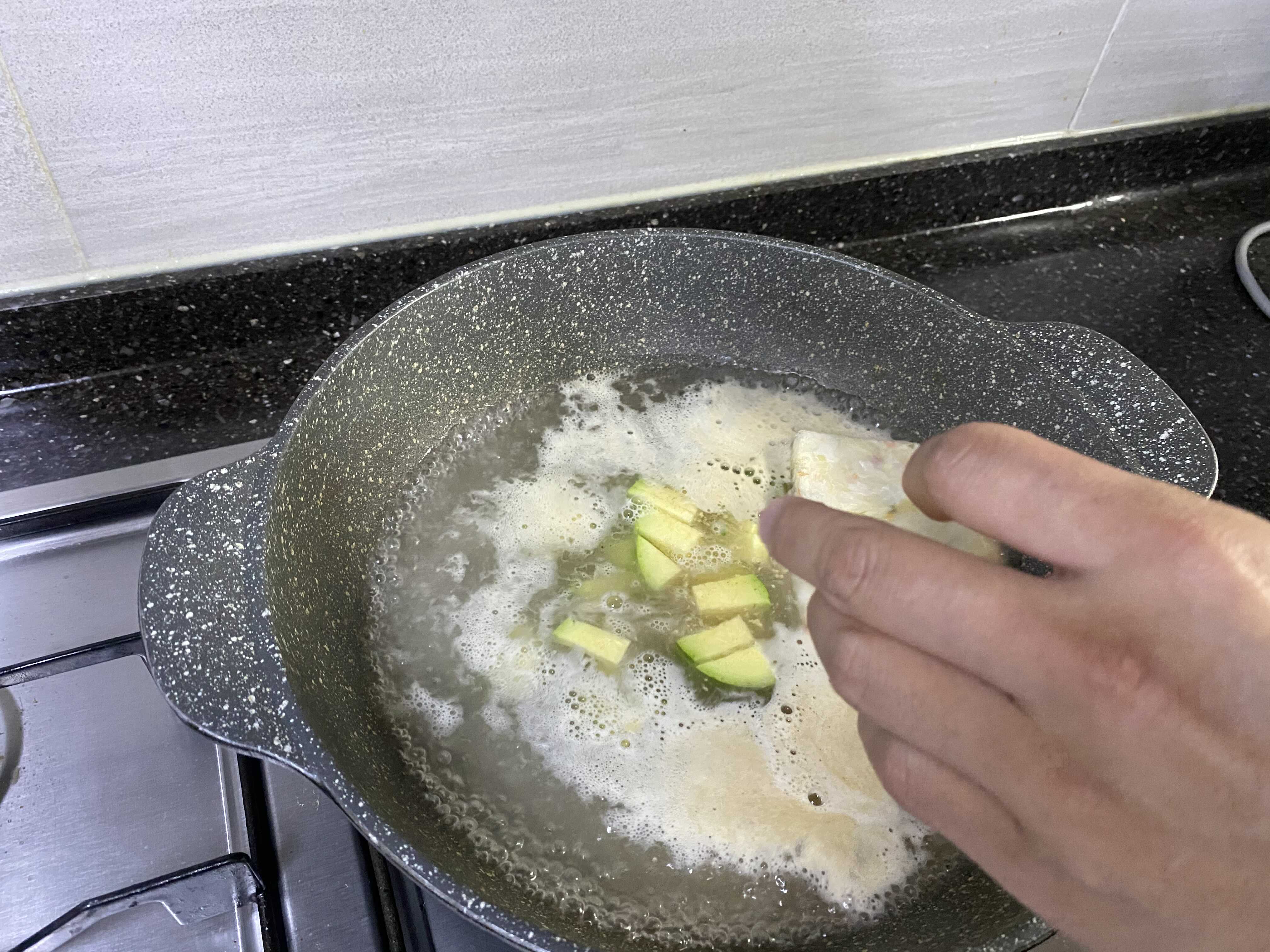 수제비,분말스프,건더기블럭을 넣고 3분30초 조리해주심 되세요.