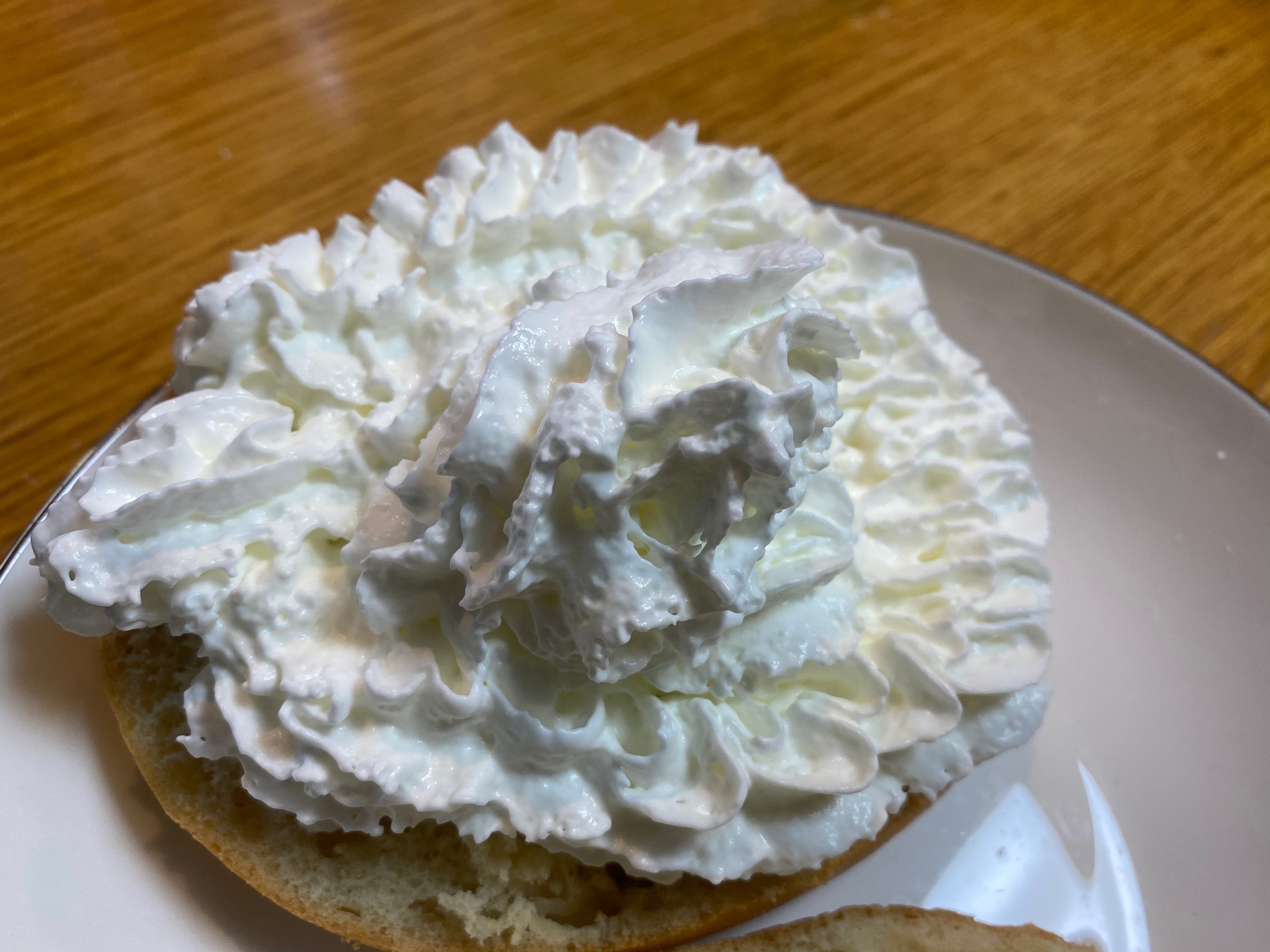 베이글 위에 코스트코 생크림을 가득 얹고나서 반으로