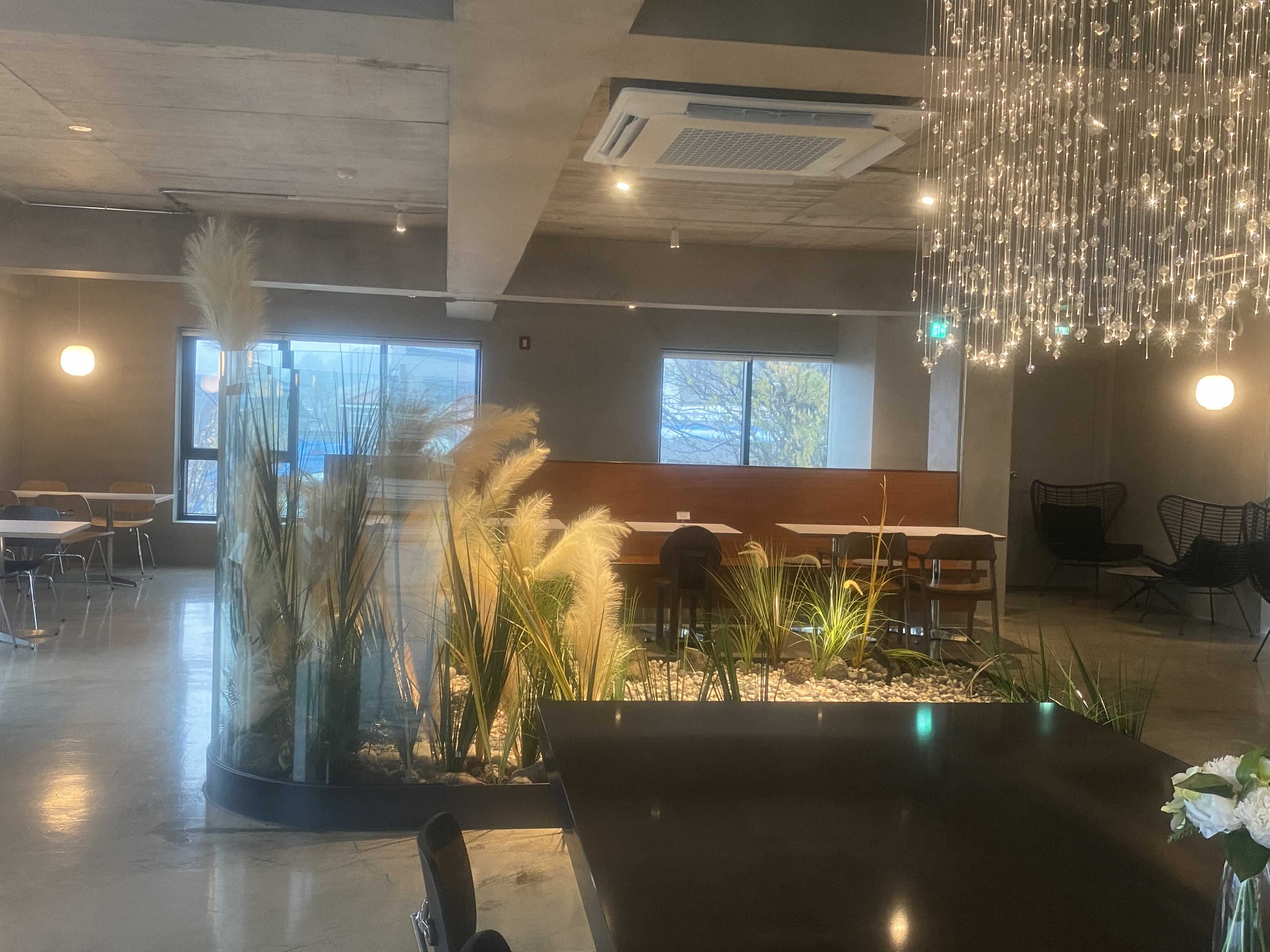 넓은 통창이 있고,중간에는 자연을 표현하고자,갈대같은게 있죠...