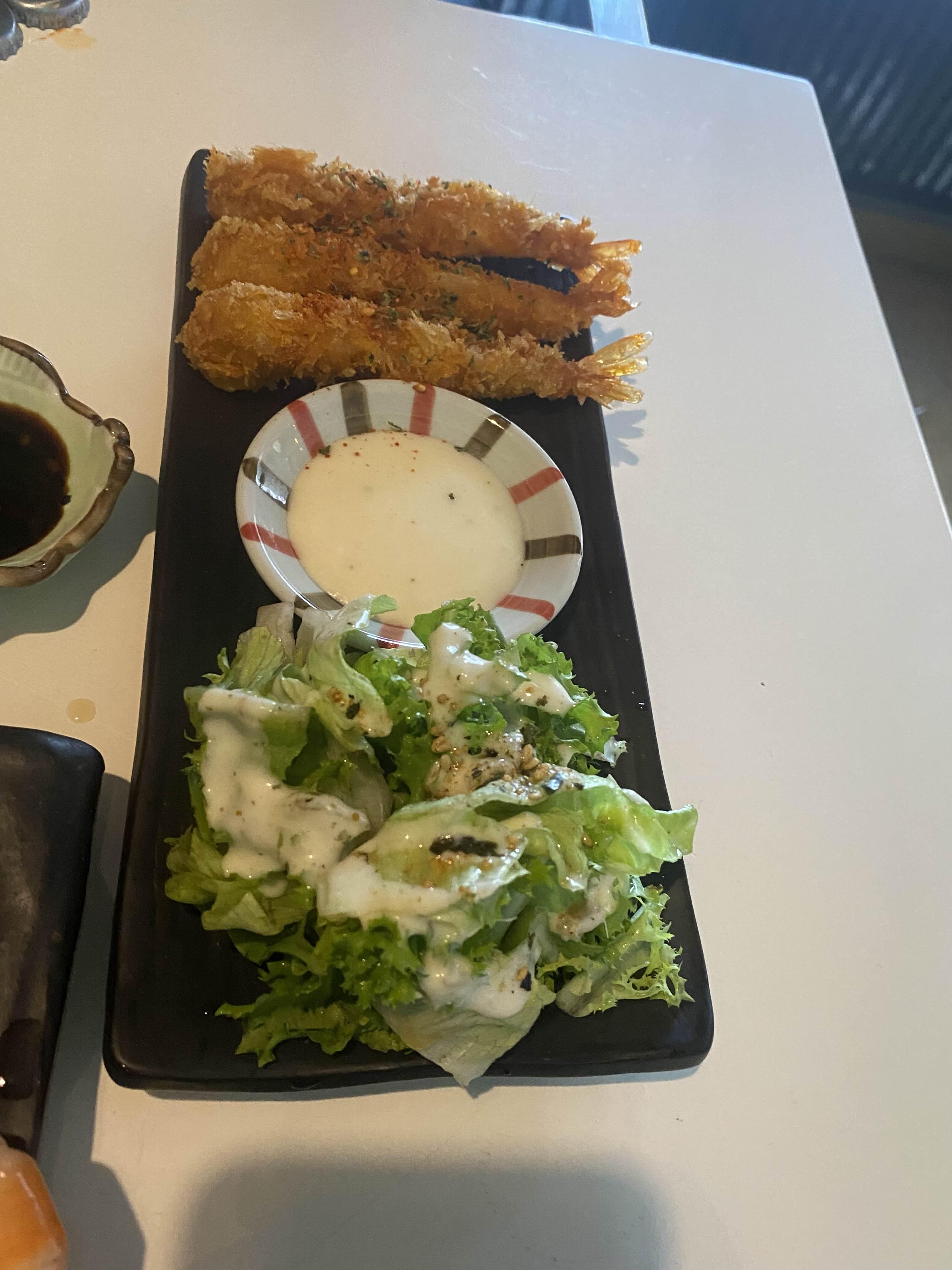 서비스로 새우튀김이랑 샐러드가 나왔어요..