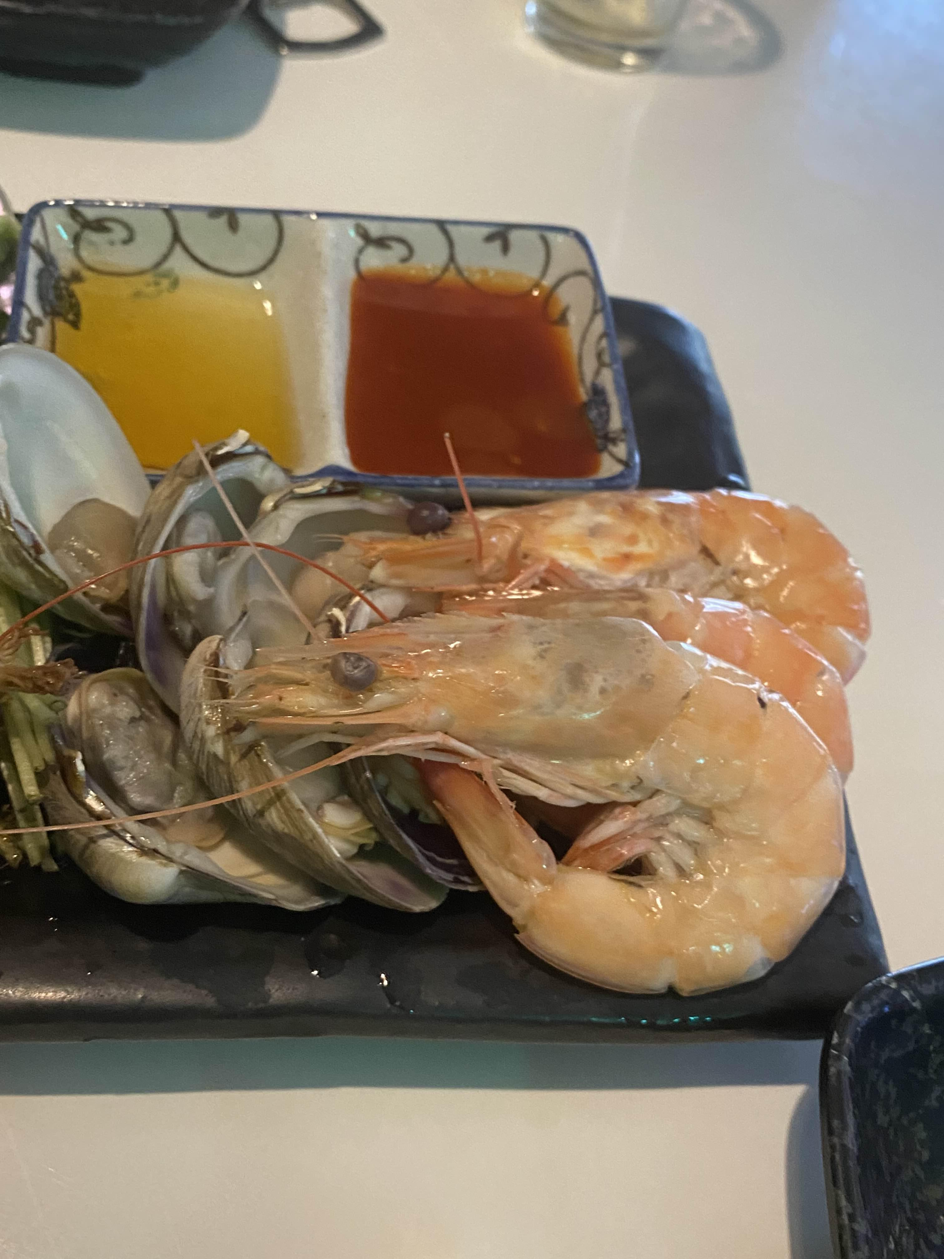 요이에서 먹은 익힌 새우는 담백했어요 하지만