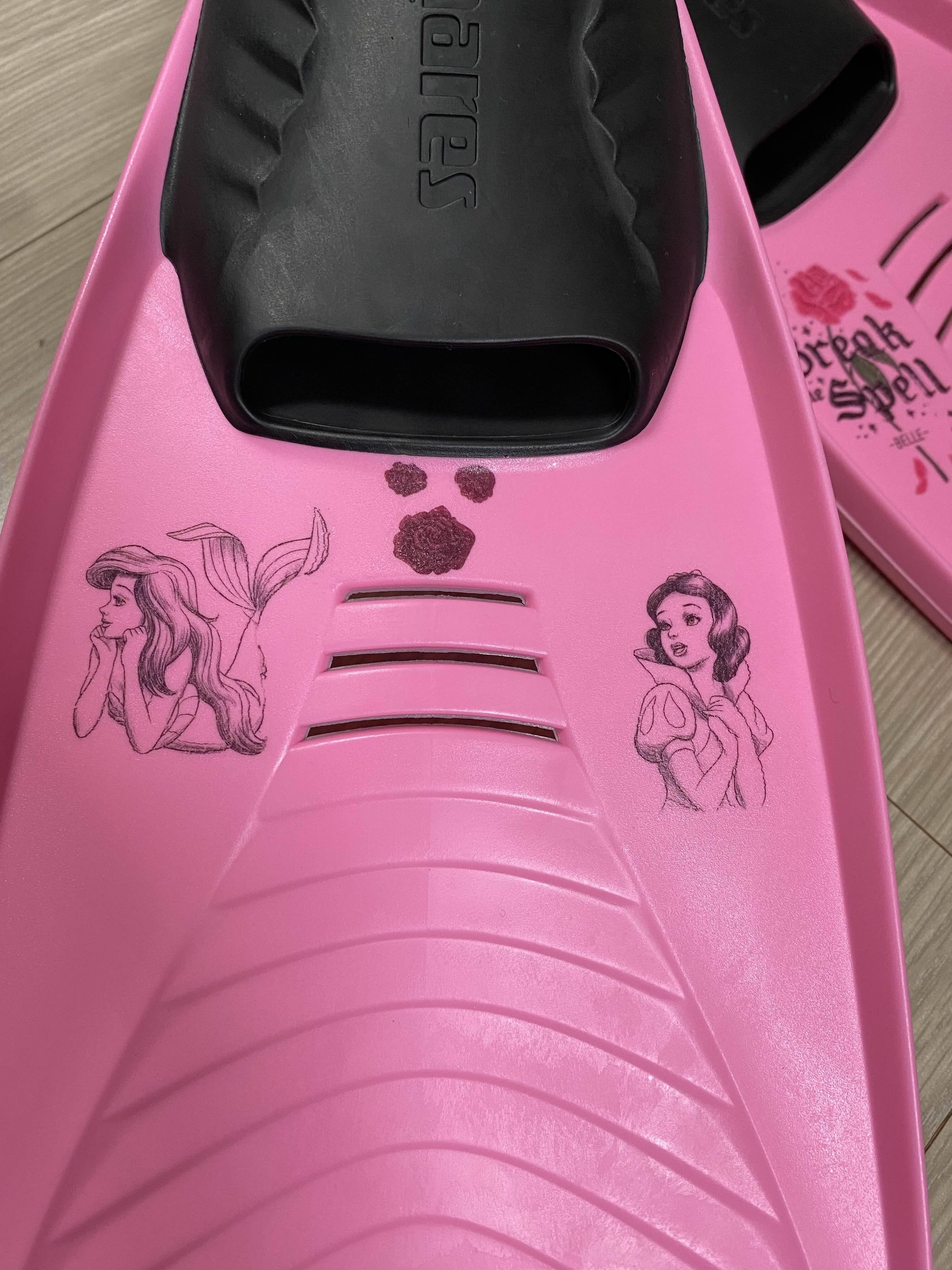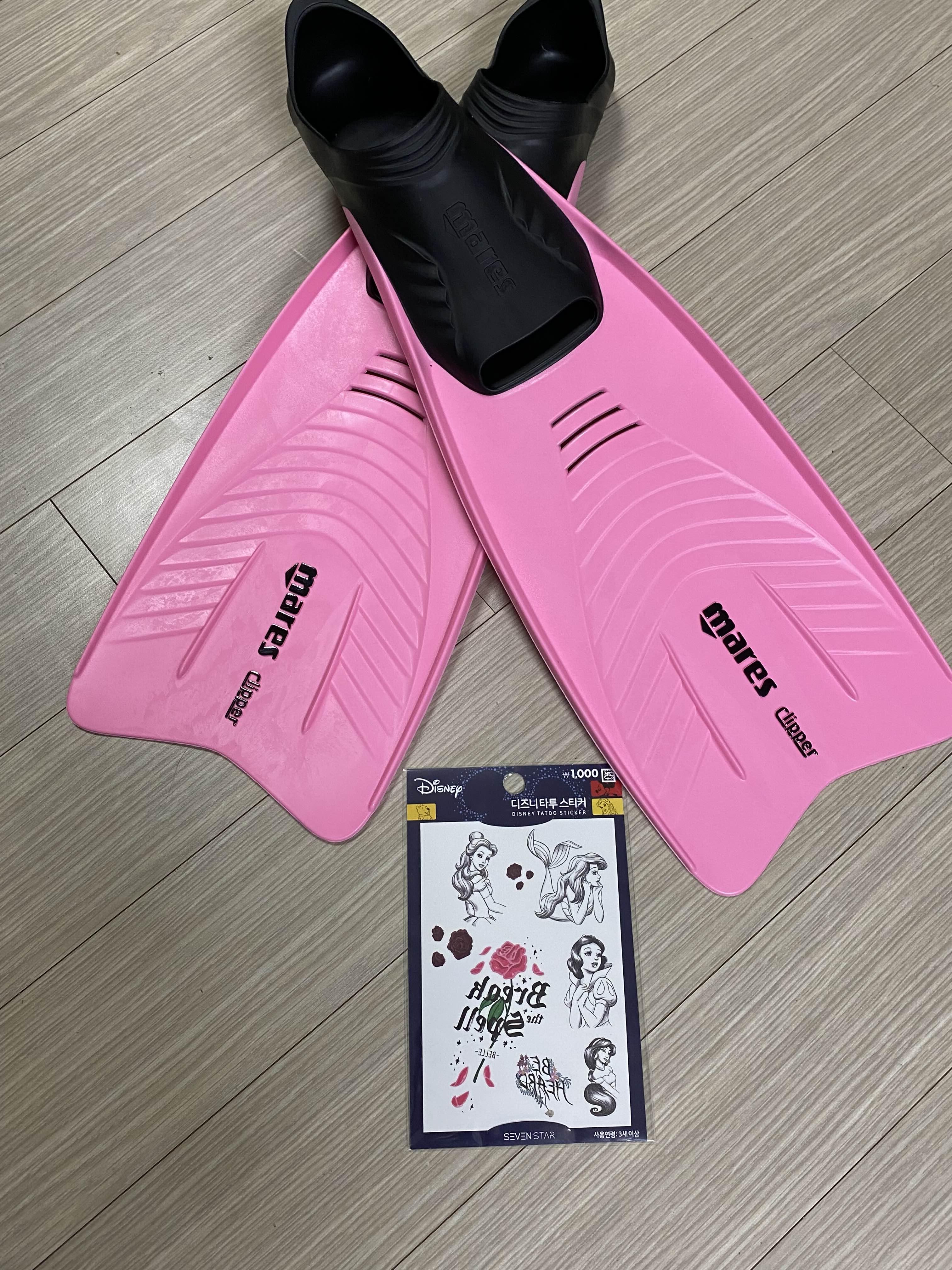 다이소 디즈니 타투스티커로 오리발을 꾸미는 방법을 소개합니다.