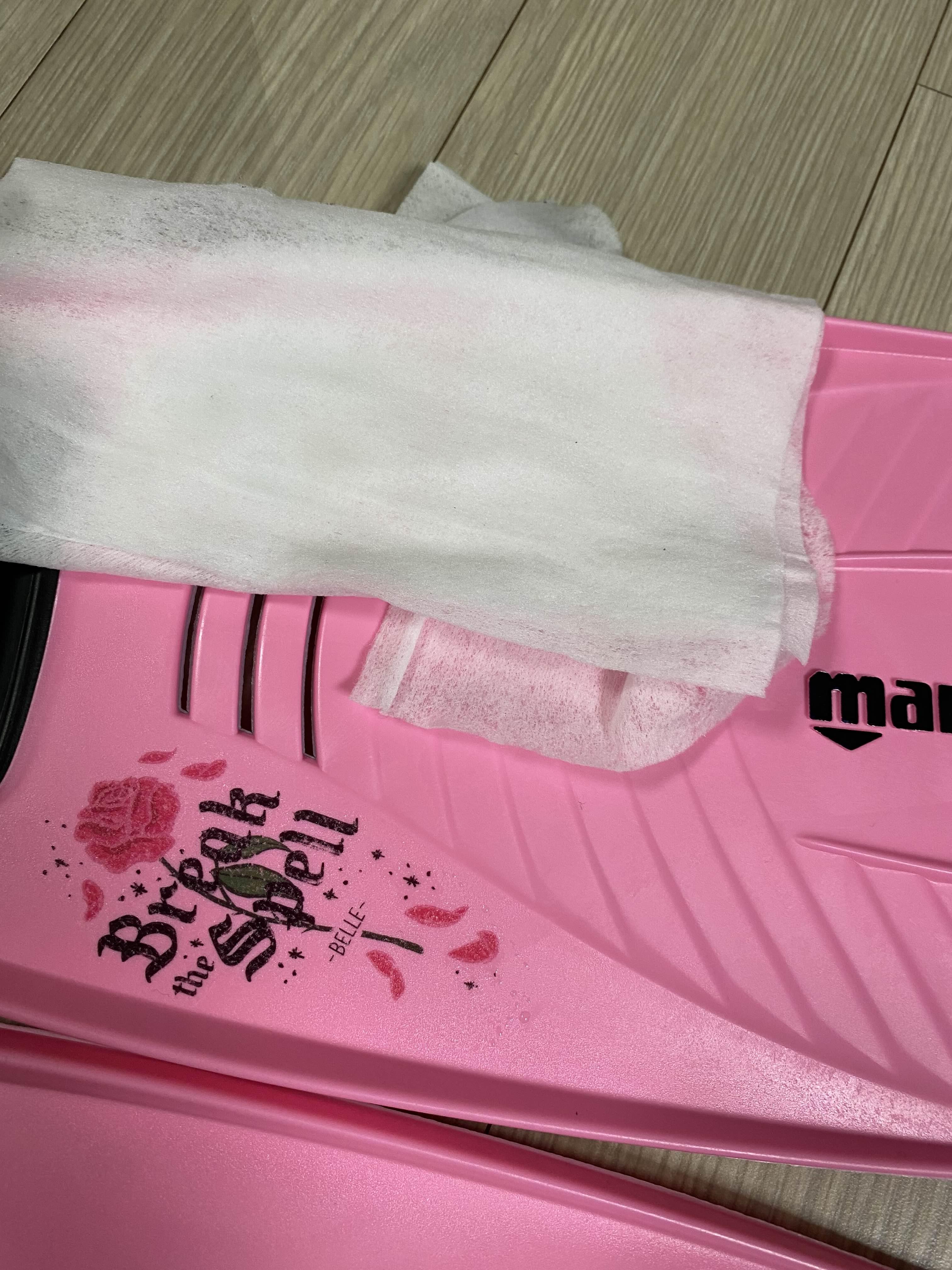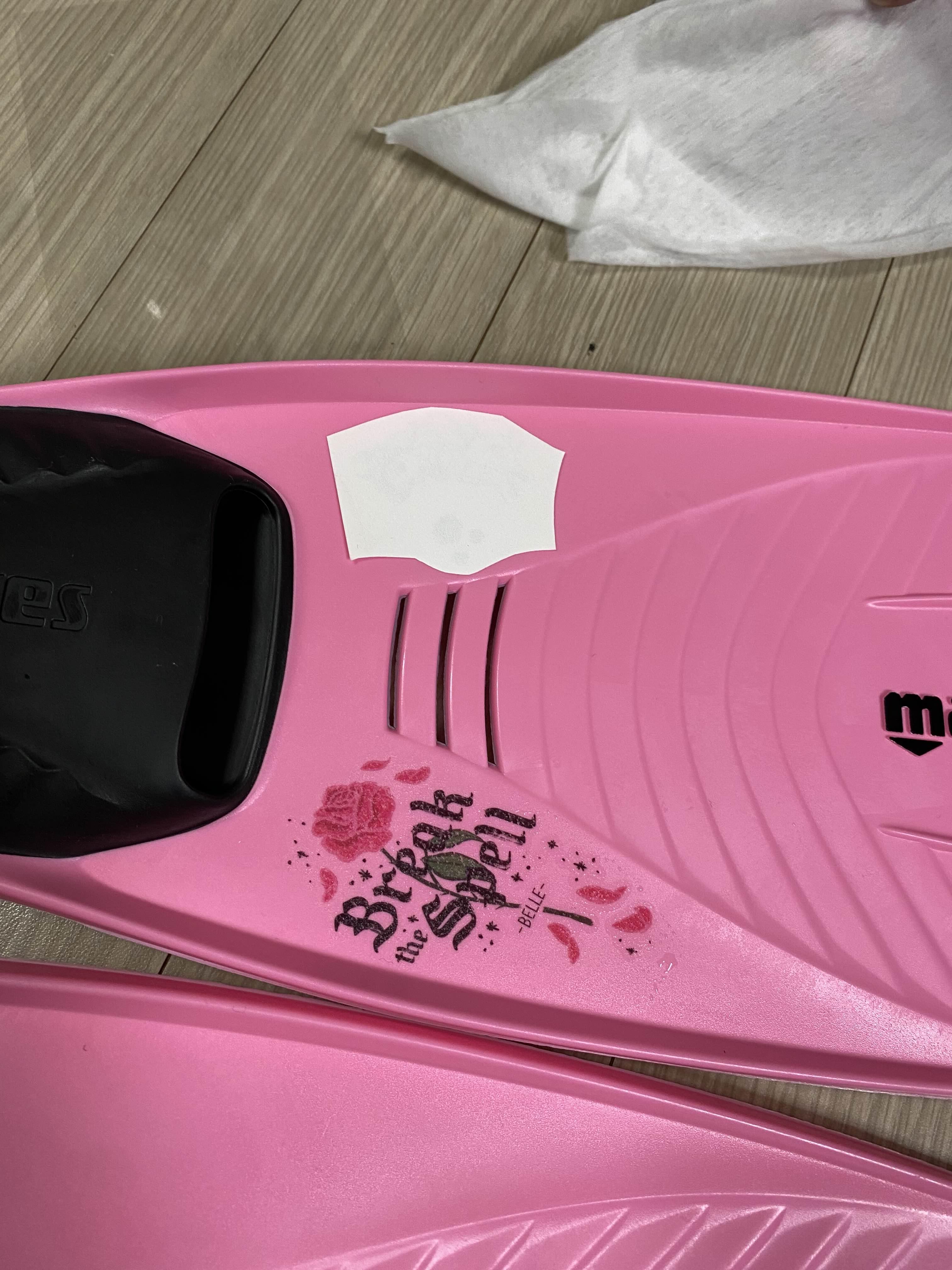 • 비닐을 떼고, 그림 면을 오리발 표면에 닿게 올려둡니다.