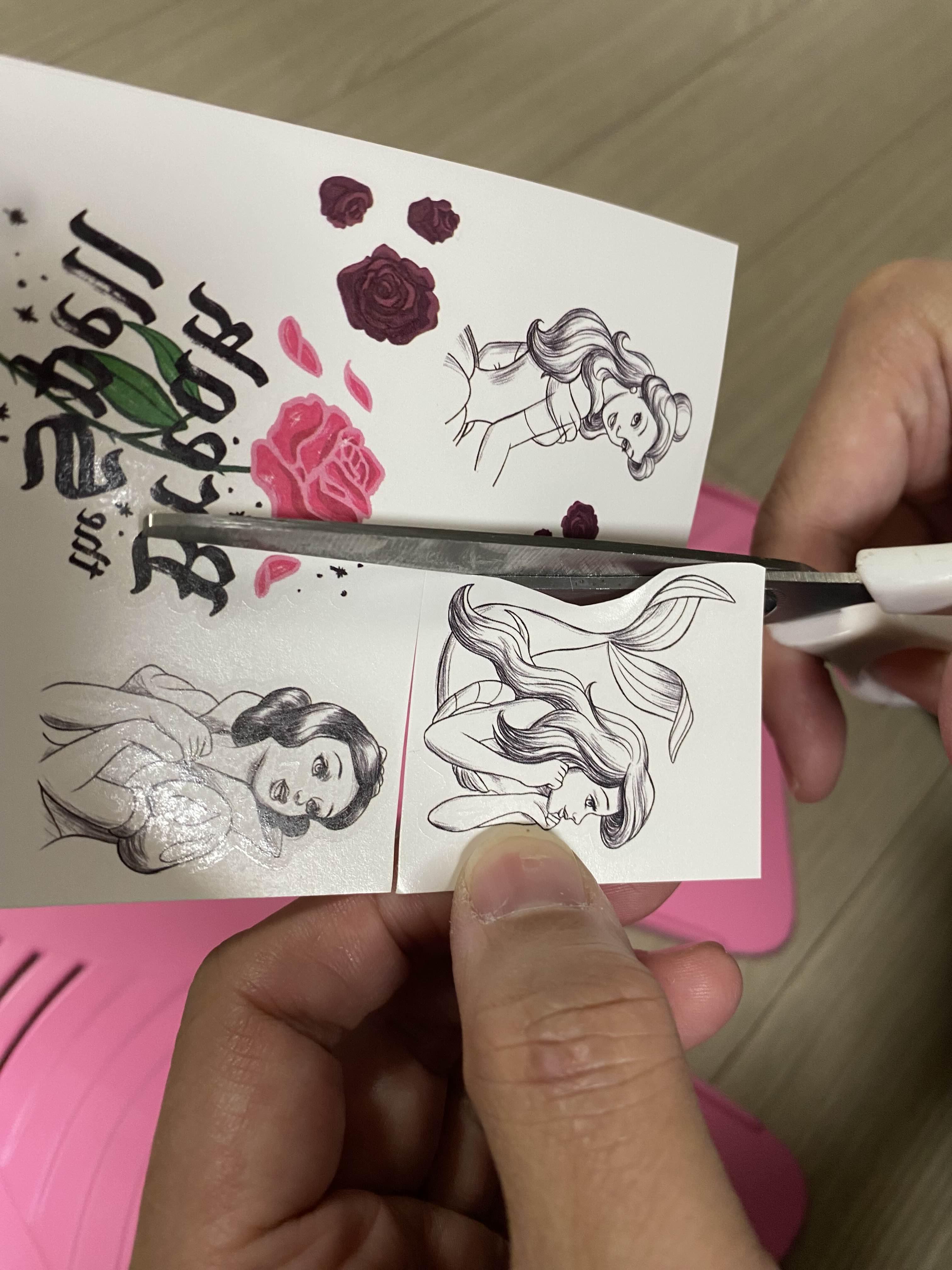 종이를 천천히 떼어내면 타투스티커 부착 완료!