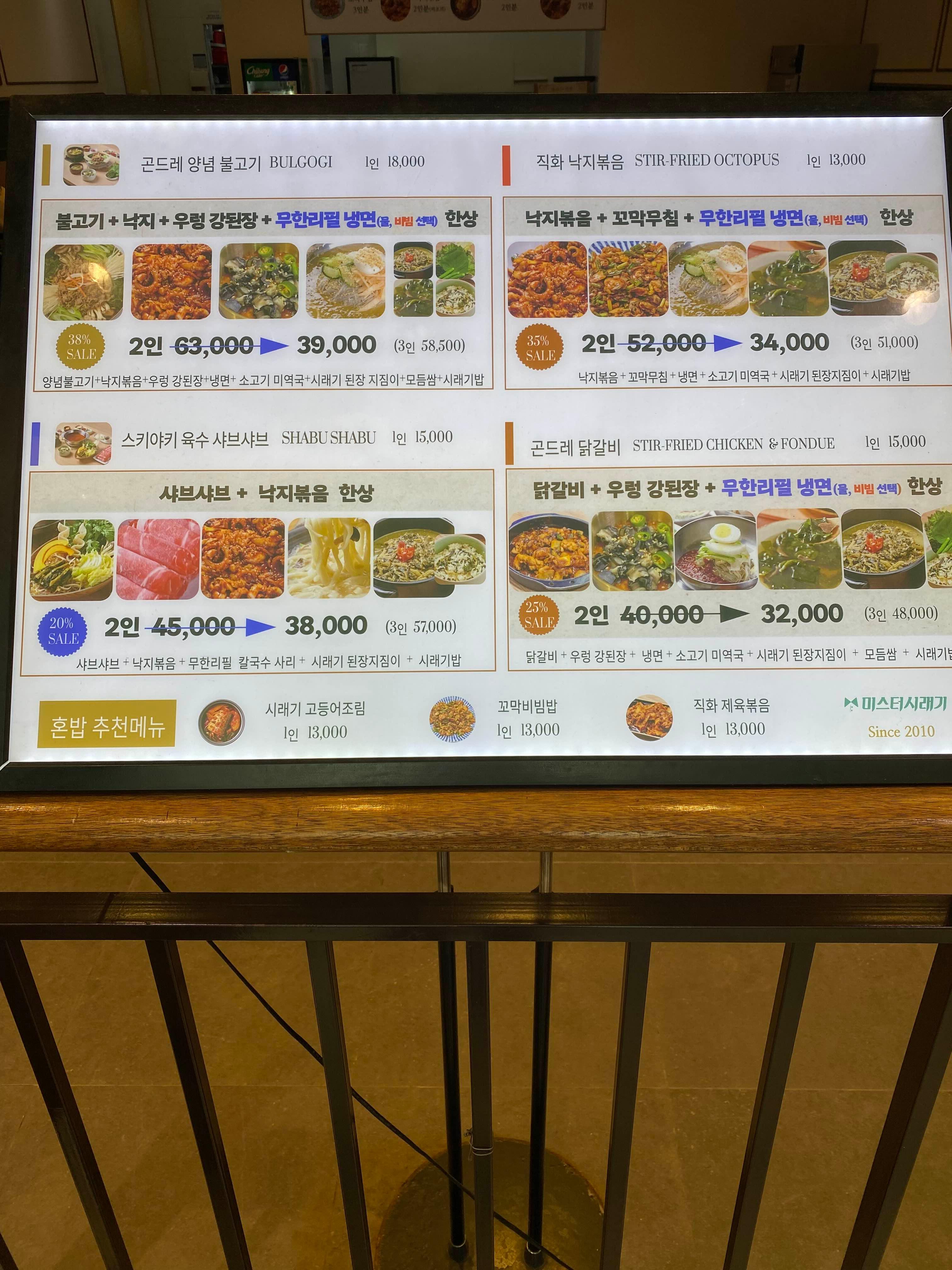 메뉴판인데 가격대는 다양하게 구성해서 20%-38%까지 할인하는 품목중에