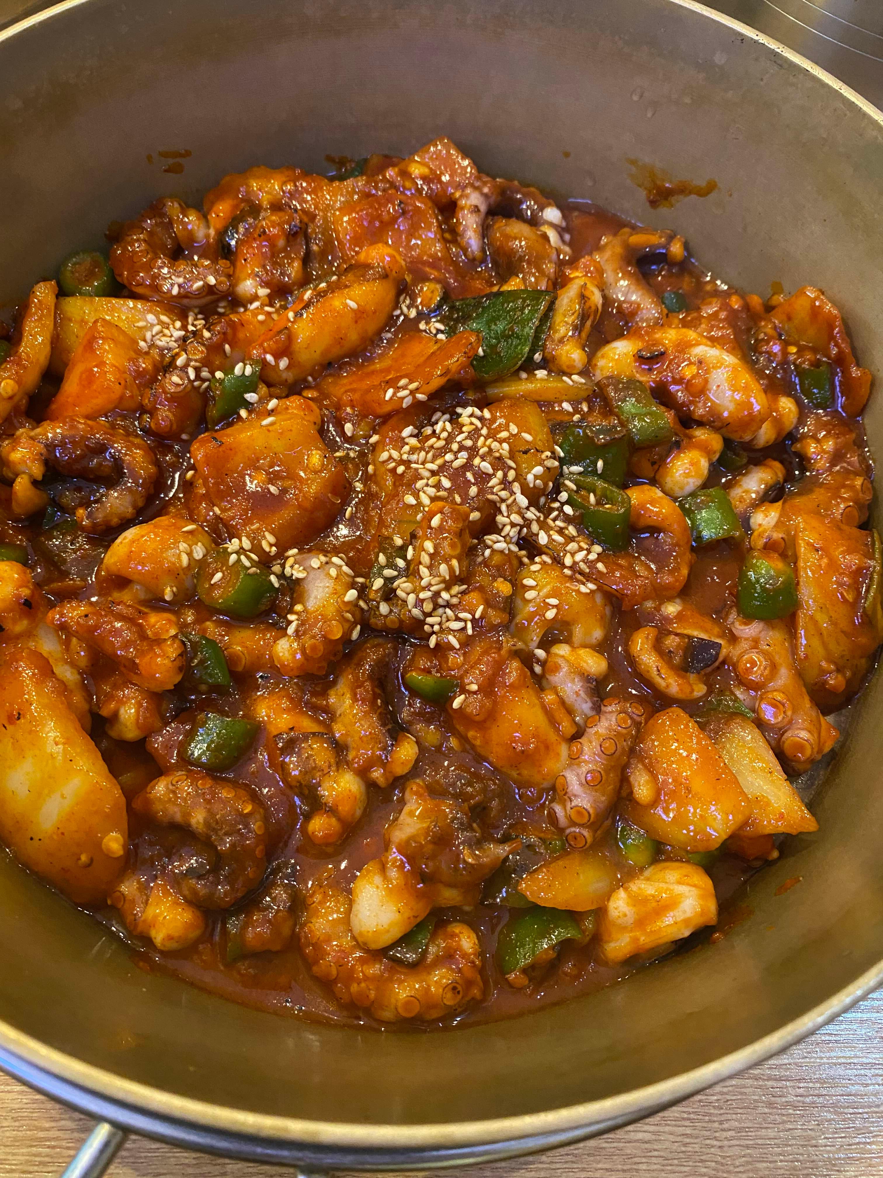 • 맛 표현: 불향 가득, 매콤달콤한 양념이 쫄깃한 낙지 씹는 맛과 환상적 조화.
