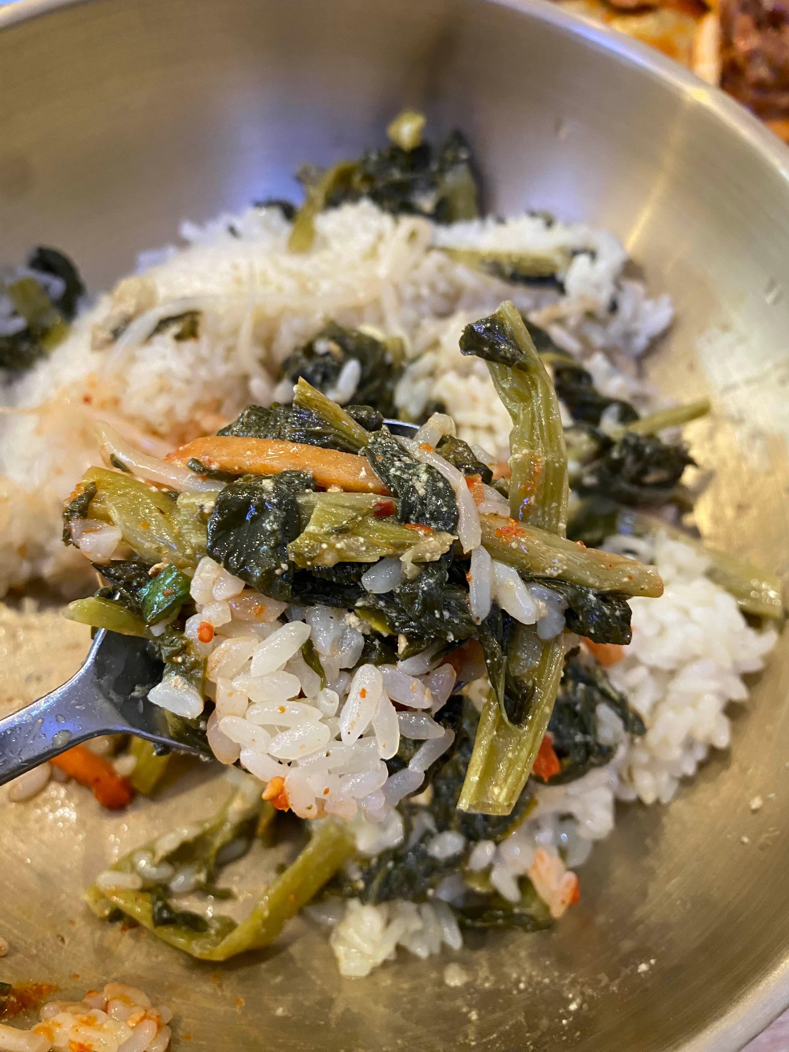 한국이는 흰밥에 먹어야지 되지 않겠어요?밥한공기가 너무 많아서 조금 덜어서 시래기