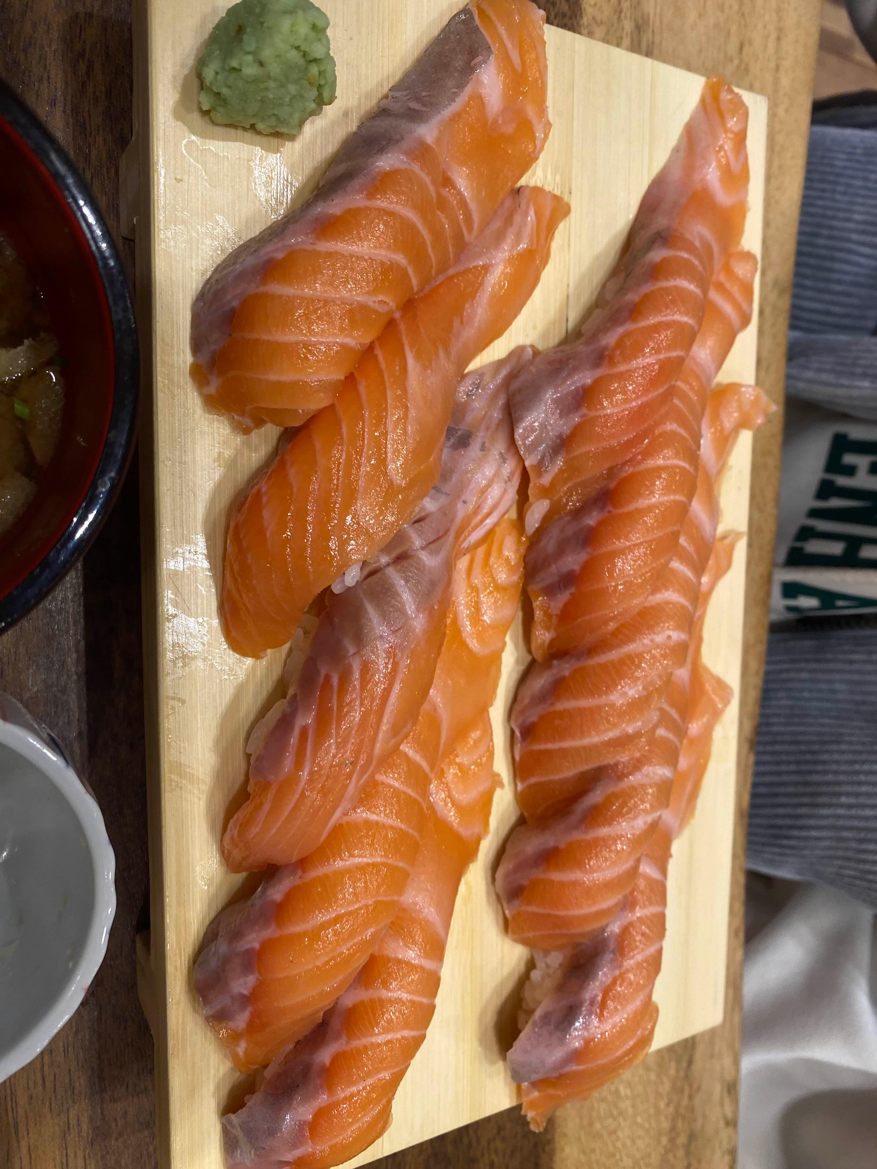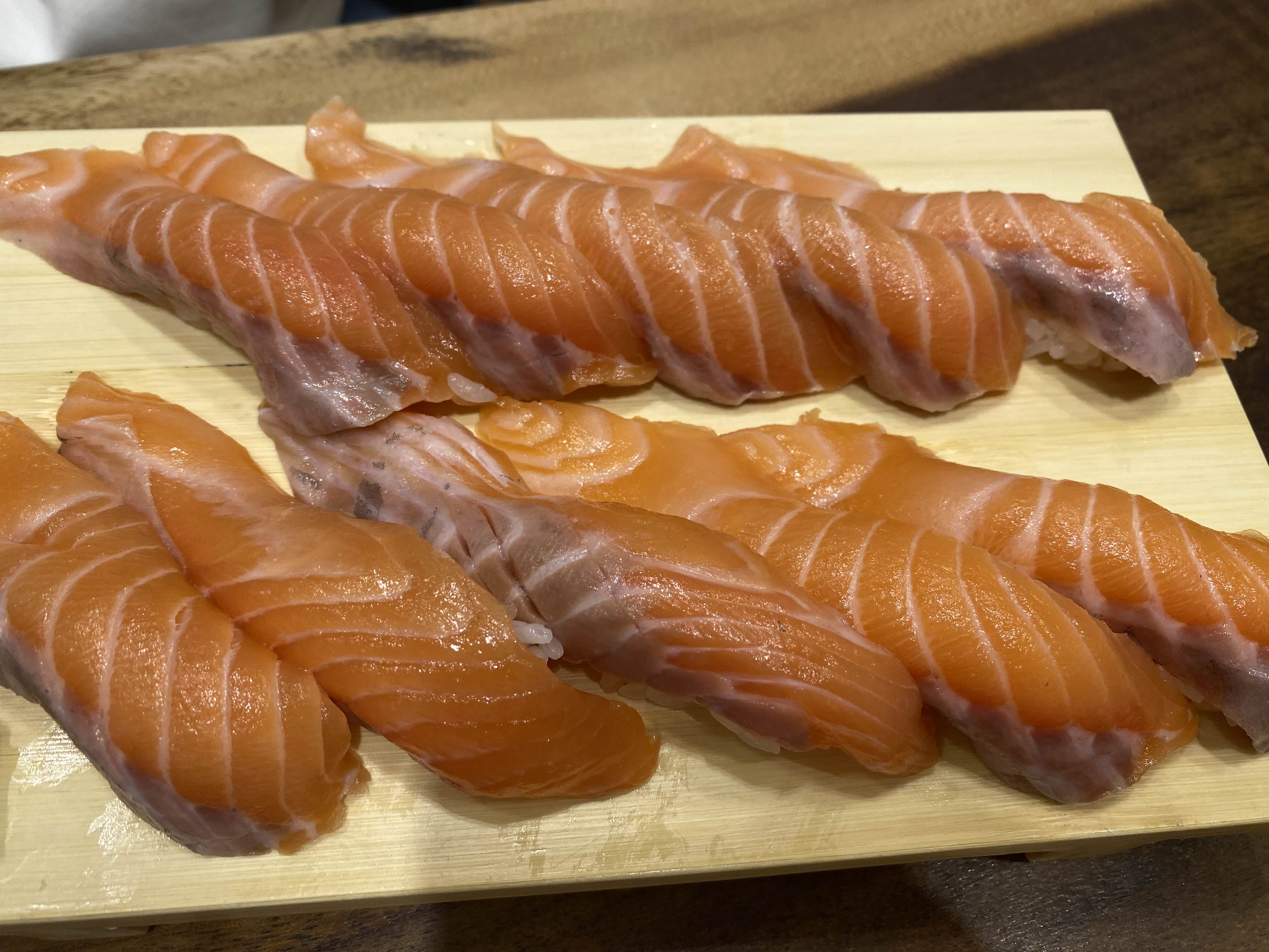 연어 초밥이 얼마나 땟깔이 좋은지 숙성회 처럼 보였어요.