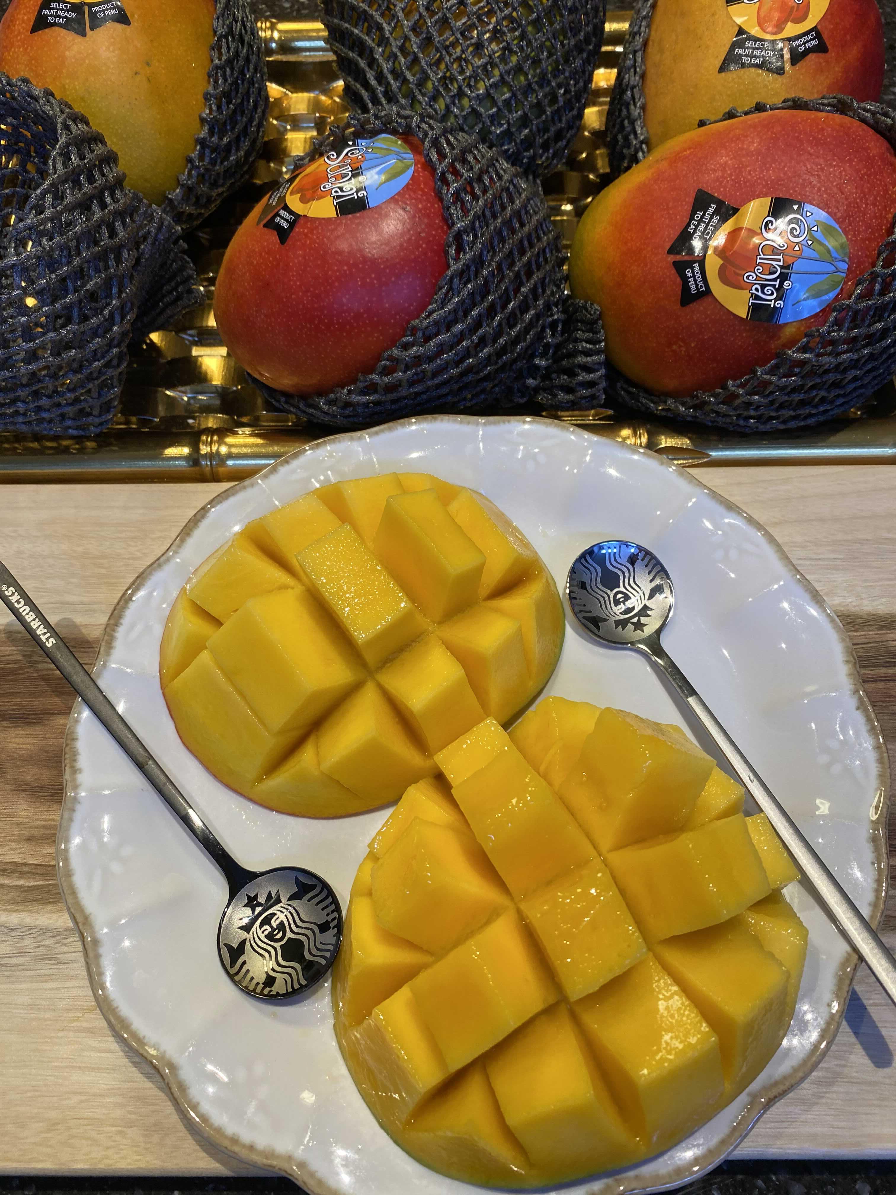 중앙은 칼집으로 먹고 양옆면에 나오는 애플망고는 샐러드에 넣어도